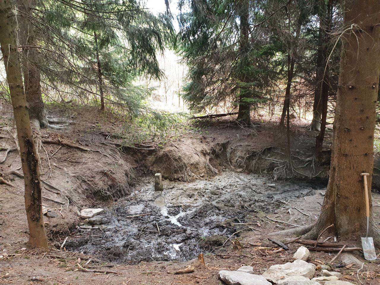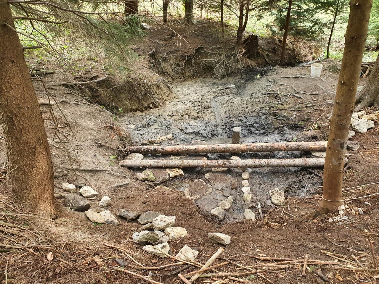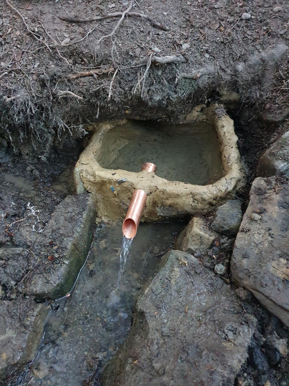 Je odhalen pramen a v jeho místě z dostupných materiálů vybudována studánka.